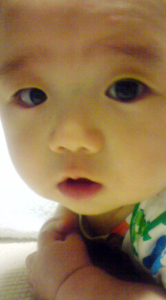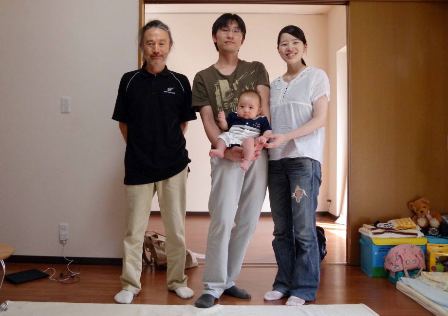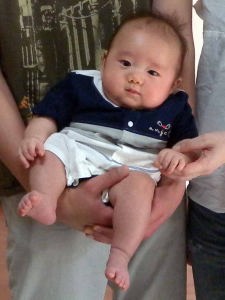 爺ちゃんがつくばの僕んちへ遊びに来たよ。(生後3ヶ月)