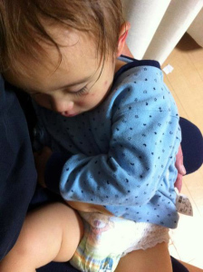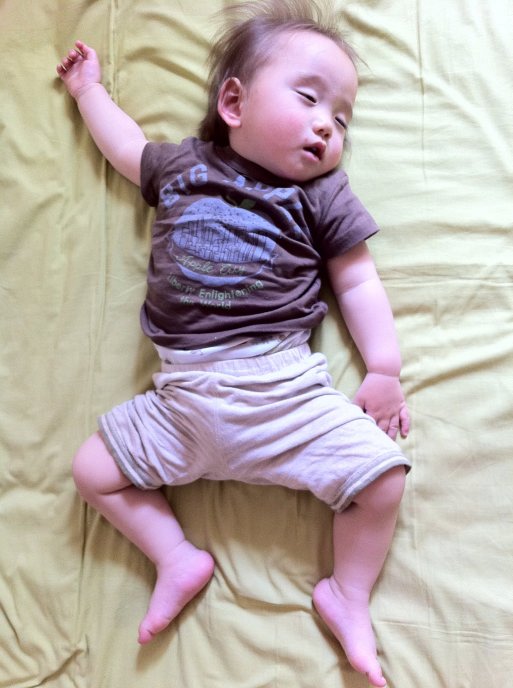 | 10/28 お家でパパにダッコされてお昼寝中だよ。 |
