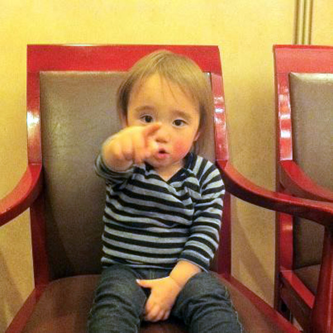 | 2/12 ファミレスであれが食べたいって指をさしてるんだ。 |