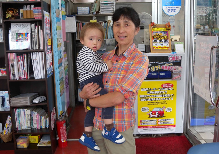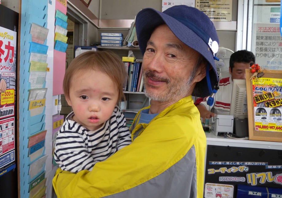 つくばの自動車販売店に爺ちゃん婆ちゃんと一緒に行ったよ。少し「懐く」ようになったんだ。