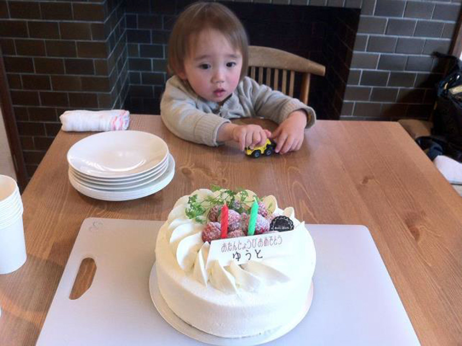 | 3/24 少し早いけど2才のお誕生会をしたよ。美味しそうなケーキだろう。 |