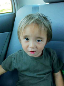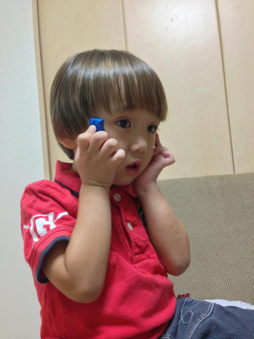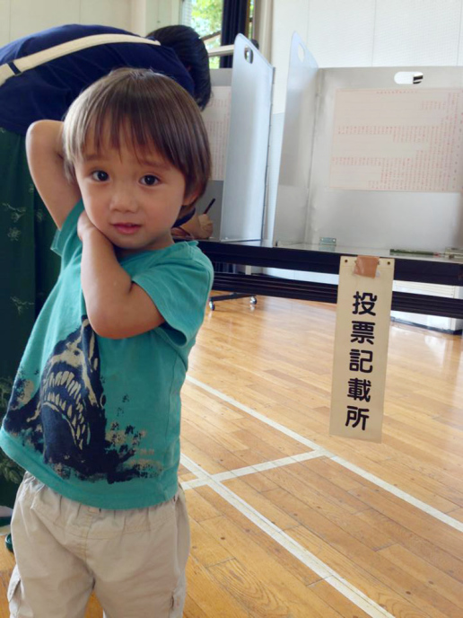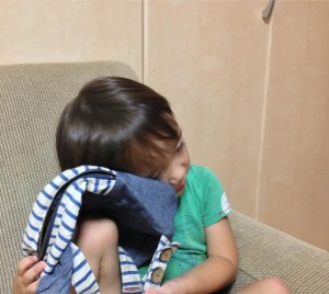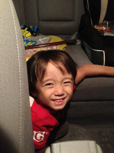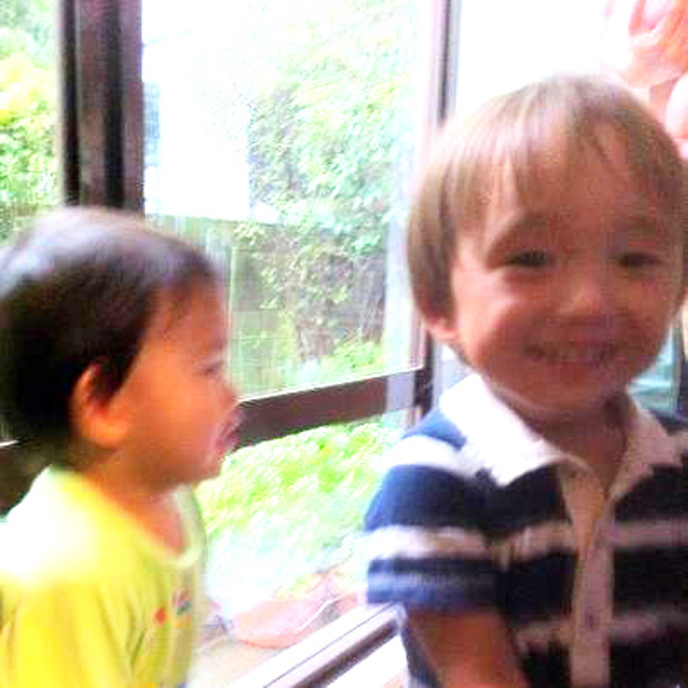 | 7/31 育園からの帰りだよ。お菓子を食べながらアカンベェしたよ。 |