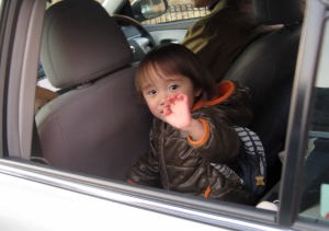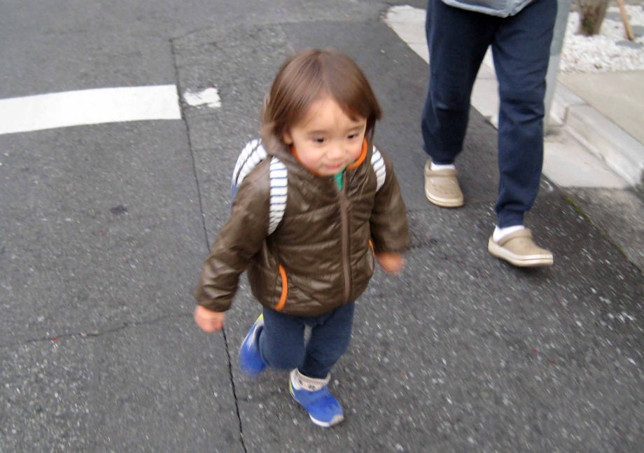 絵本を読んでもらったんだ。絵の真似をして遊んだよ。帰りは駐車場まで歩いたんだ。