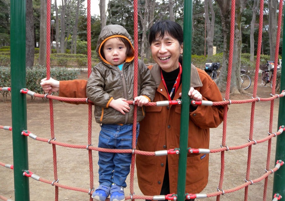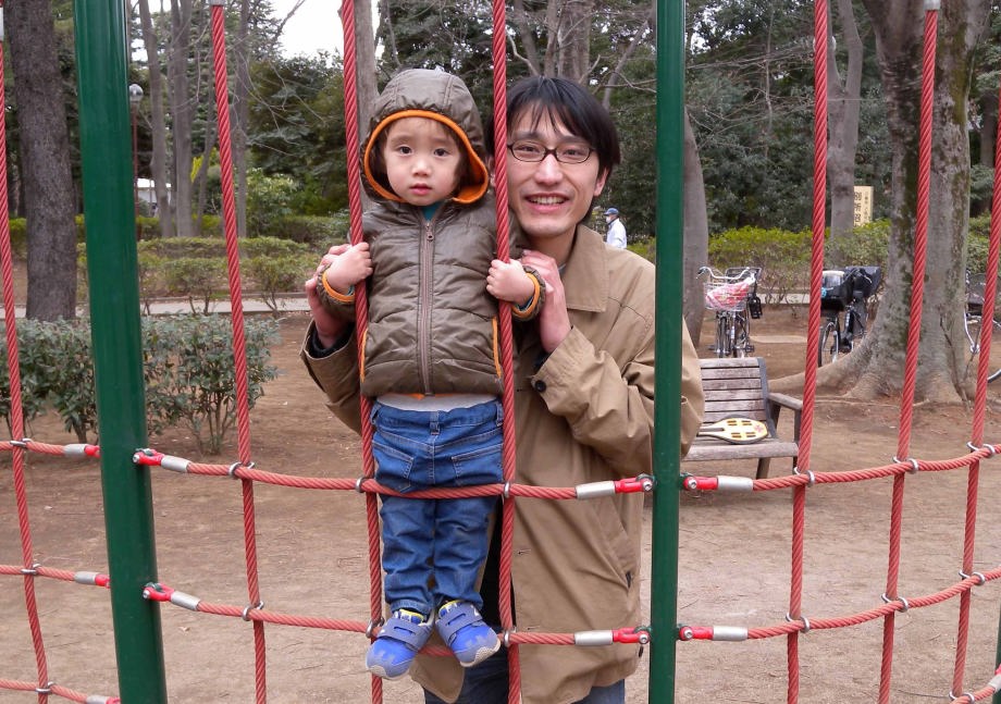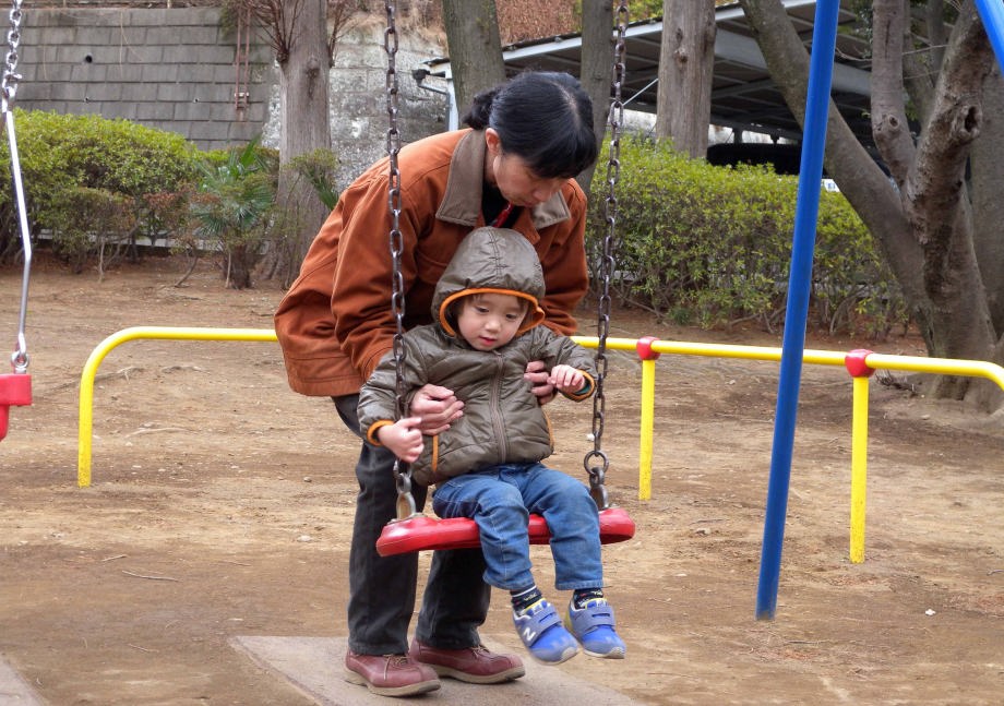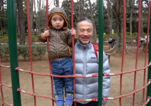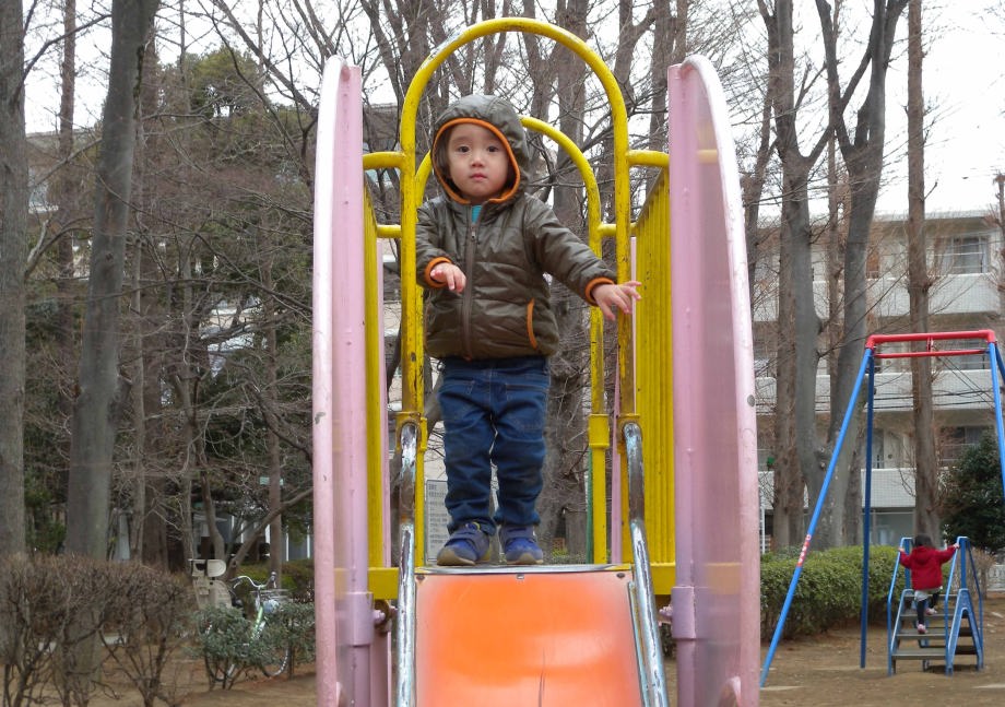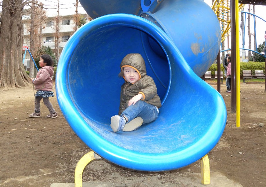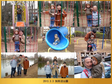 お風呂に入ってから「別所沼公園」で遊んだよ。パパも子供の頃この公園で遊んだんだって。帰るとき爺ちゃんが抱っこして「また来てね」って言ったよ。