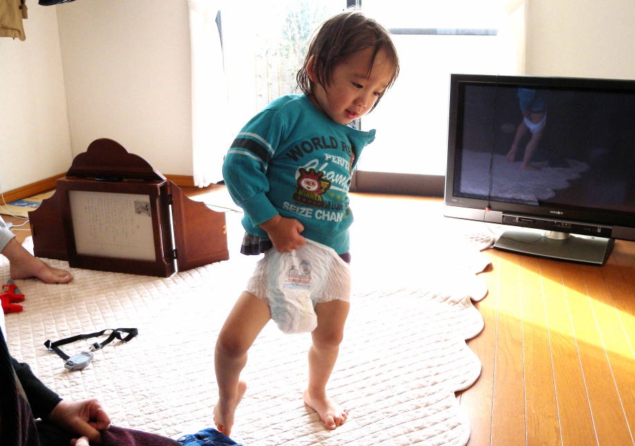 自分でオムツを履いてるんだ。