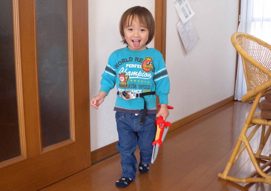 仮面ライダーのオモチャで遊んだよ。