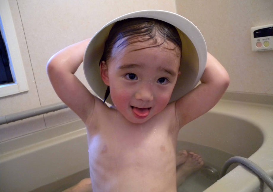 オムツを替えるから爺ちゃんとお風呂に入ったよ。