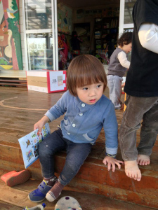 | 4/8 保育園から帰るところだよ。今日はパパがお迎えに来てくれたんだ。 |