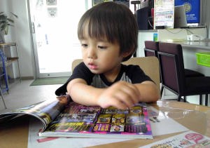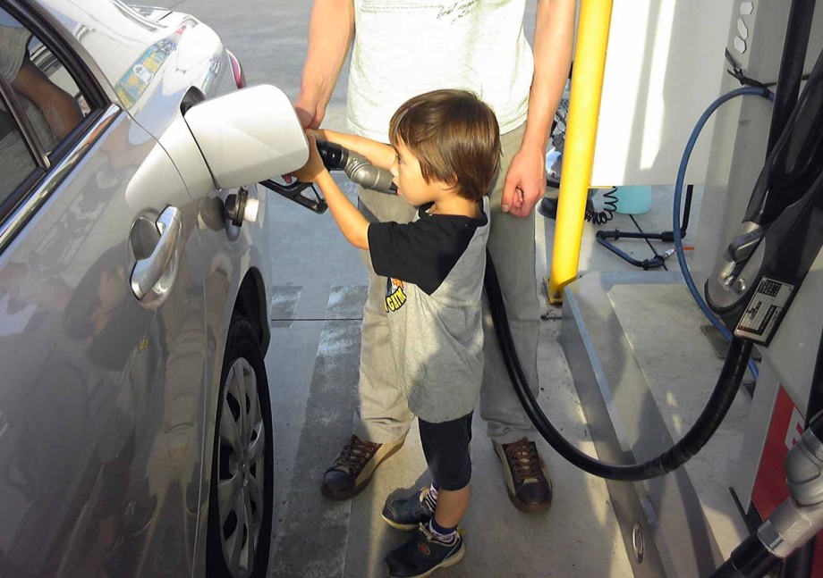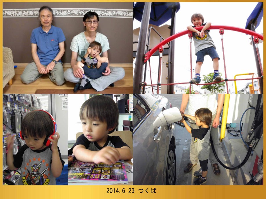 爺ちゃんが遊びに来たよ。ママは春ちゃんを連れて学校に行ったからいないんだ。近所の公園で遊んでからガソリンスタンドでガソリンを入れたよ。