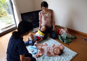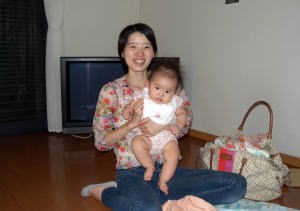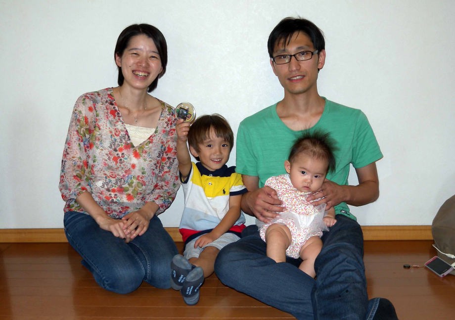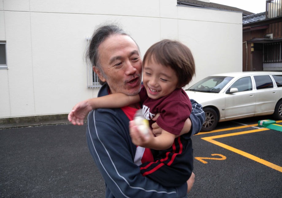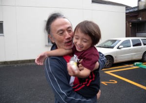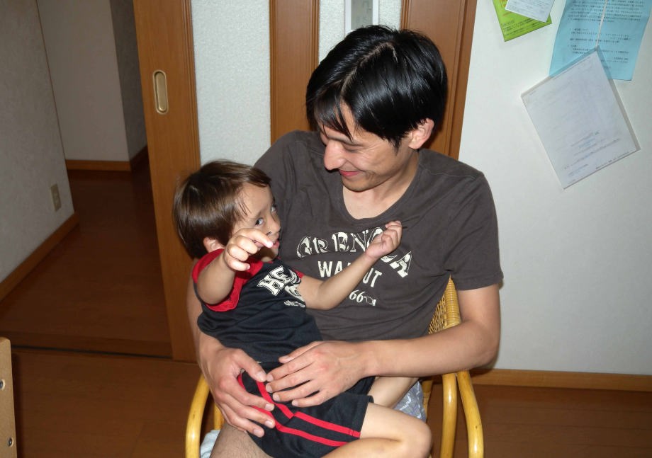 爺ちゃんちでパパにダッコされてるんだ。