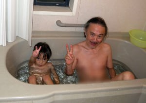 爺ちゃんとお風呂に入ったよ。
