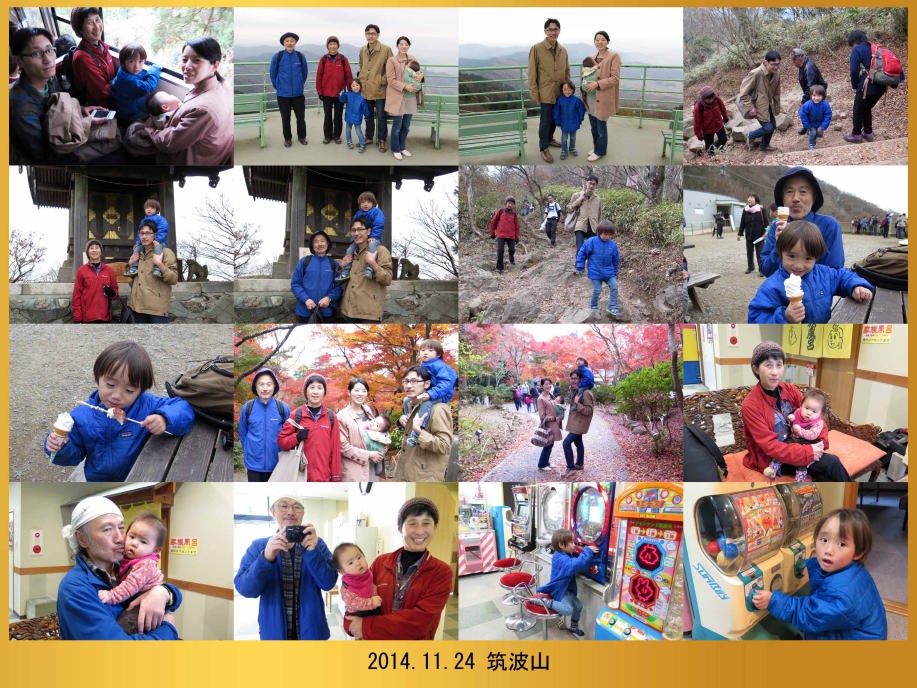 みんなで筑波山に行ったよ。ケーブルカーを降りてから男体山頂上まで15分くらい登ったんだ。いつか一番下から登りたいな…。帰りは温泉に入ったんだ。爺ちゃん婆ちゃんは「春ちゃん」をダッコして喜んだよ。