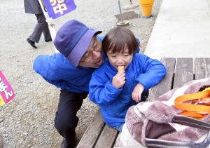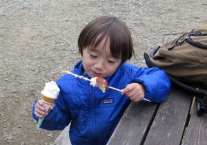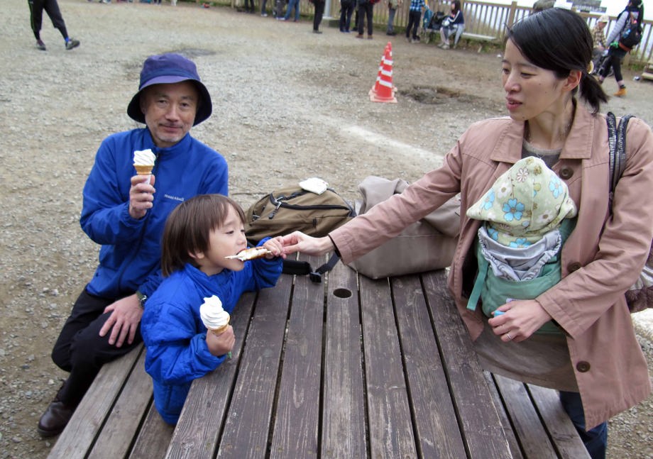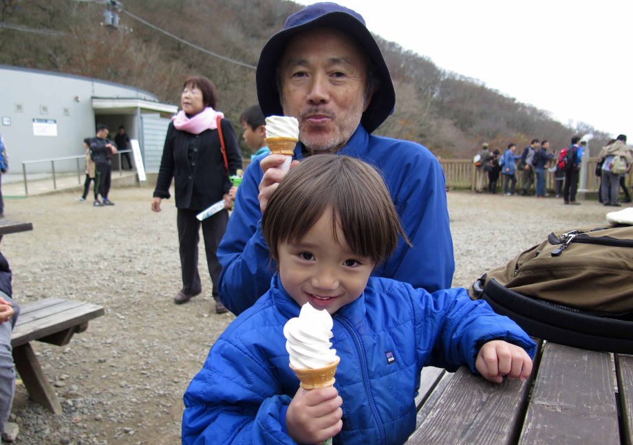 爺ちゃんとソフトクリームを食べたよ。