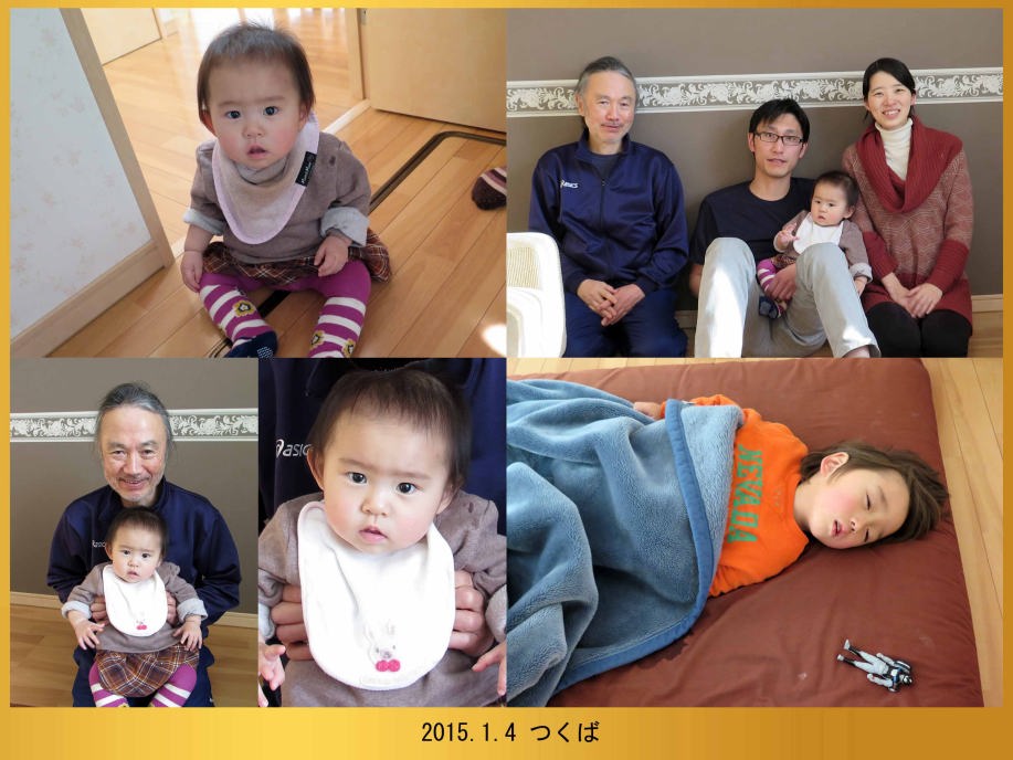お正月に爺ちゃんが遊びに来たんだ。「春ちゃん」をダッコして喜んだよ。でも僕は風邪気味でズーット寝てたんだ。後で爺ちゃんに「お土産ありがとう」って電話したよ