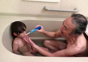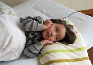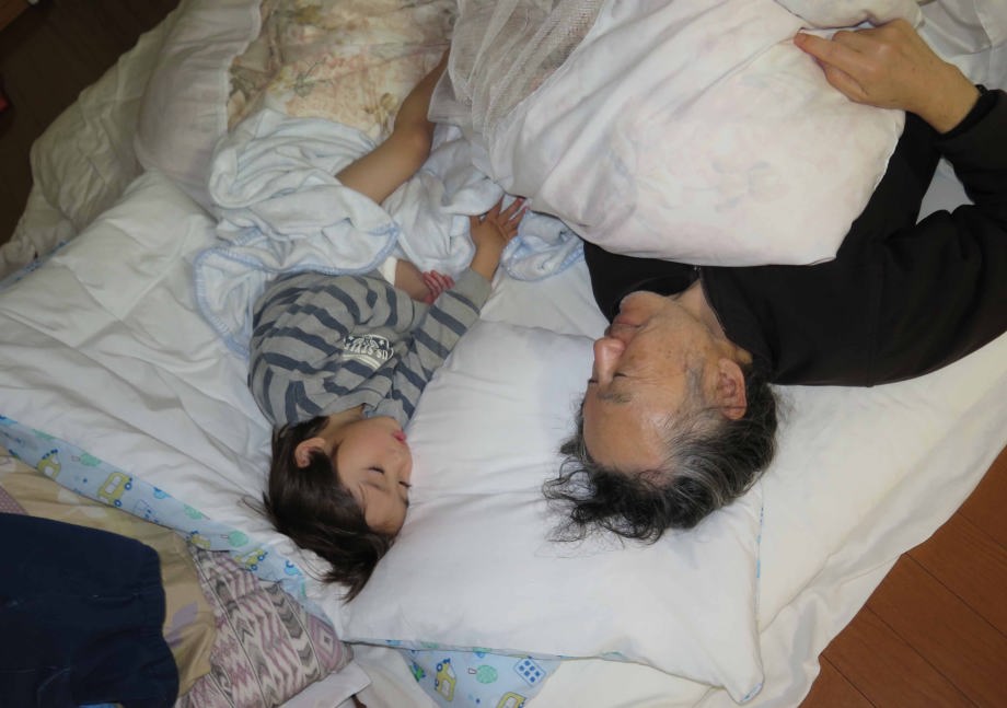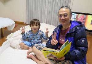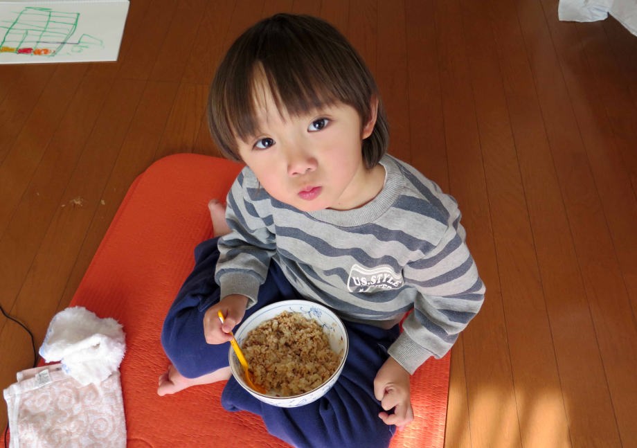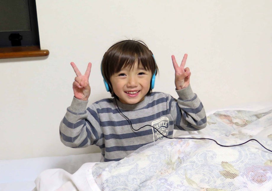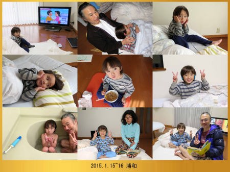 | 1.15~16 熱が出たから爺ちゃんちに来たんだ。夜は40度の高熱で爺ちゃん婆ちゃんに看病してもらったよ。朝は元気になってイヤホン付けてテレビを見たんだ。お昼は玄米ご飯を食べたよ。爺ちゃんがダイソーでヘッドフォンを買って来てくれたんだ。お風呂に入って電動歯ブラシで歯を磨いたよ。絵本を読んでもらって寝たんだ。 |