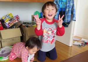 爺ちゃん婆ちゃんが来たよ。パパとママは仕事で出かけたから僕と春ちゃんは一緒にいたんだ。お昼までは近所の展示館で遊んだけど雨が降っていたから午後はうちで遊んだんだ。