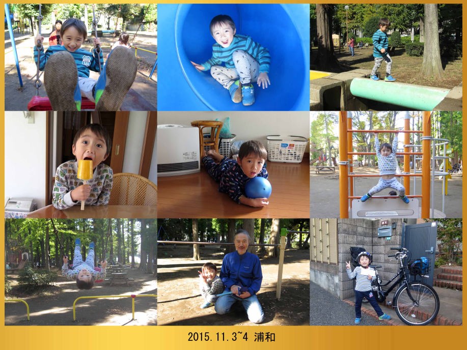 | 15.11.4 別所沼公園で遊んだよ。もっとお泊りしたかったけど就学時健診があるから爺ちゃんに連れられて川崎に帰ったんだ。 |