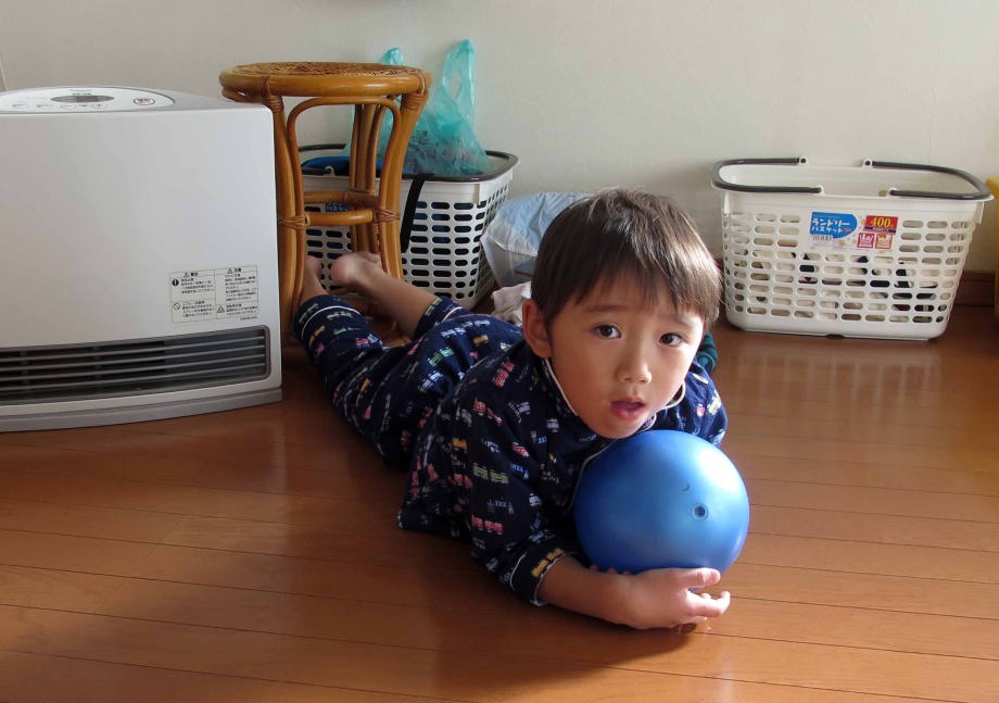 | 11/4 今朝は寒いからストーブにあたってるんだ。 |