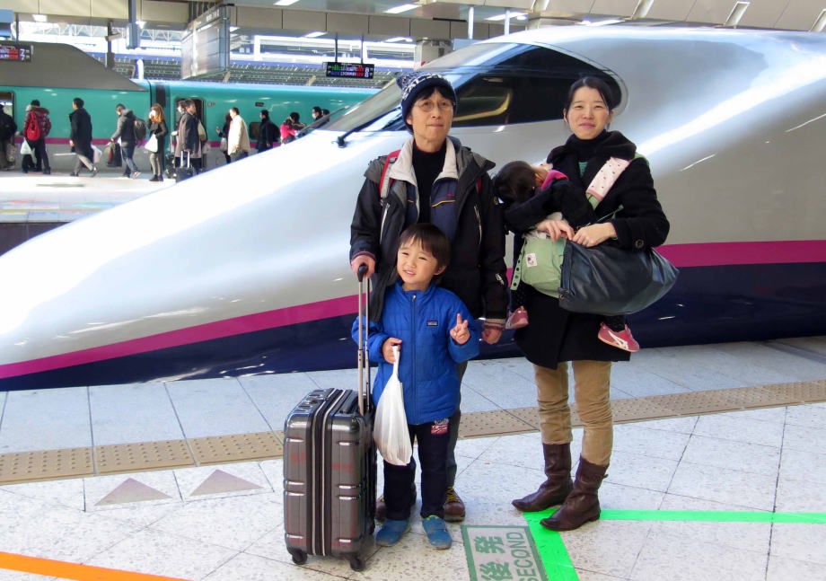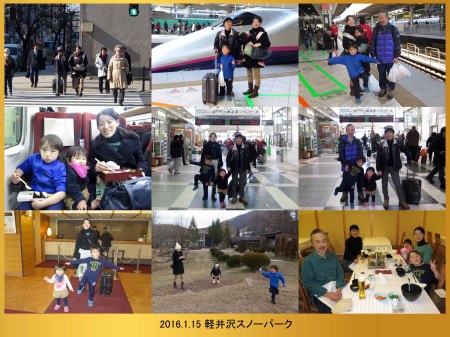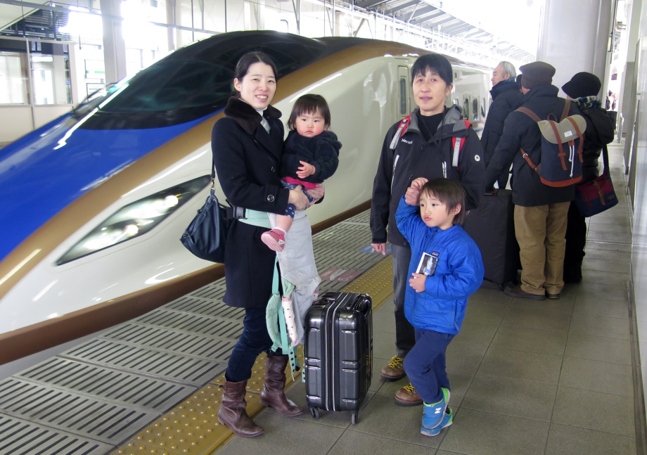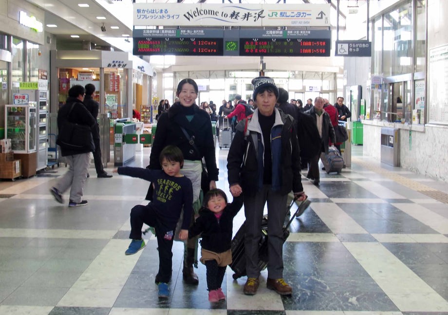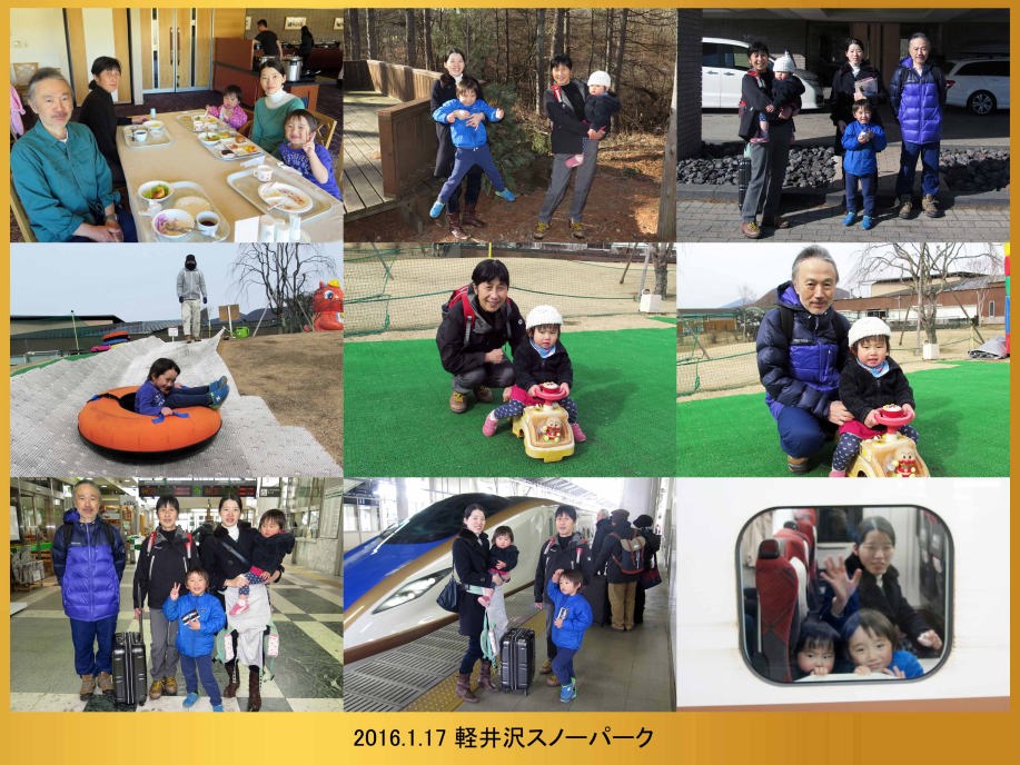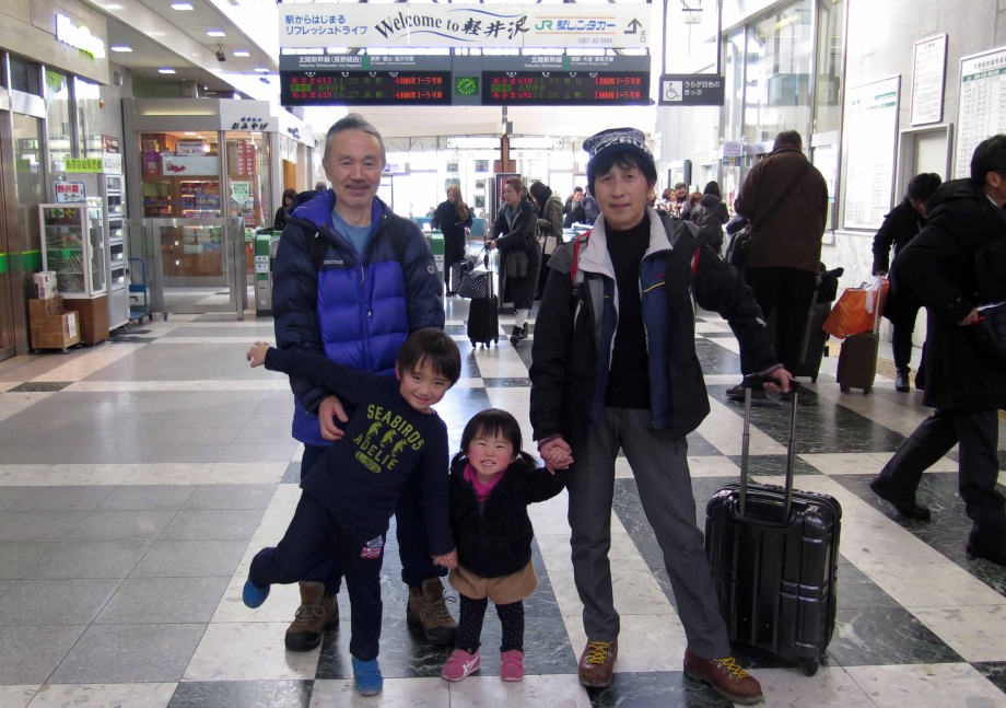 | ホテルの周りで少し遊んでから軽井沢駅に戻ったよ。駅の近くでも少し遊んで新幹線に乗ったんだ。大宮駅で爺ちゃん婆ちゃんとバイバイしたよ。スキーは楽しかったね。 |