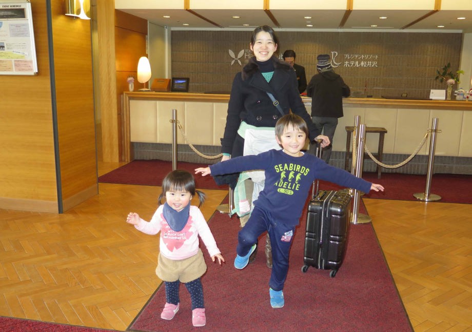 | 東京駅から新幹線に乗って軽井沢スノーパークに行ったよ。軽井沢駅からバスに40分乗ってプレジデントリゾートホテルに着いたんだ。ホテルの周りは雪がなかったから凧揚げして遊んだよ。 |