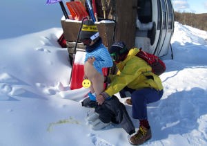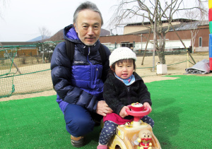 | 爺ちゃんとリフトに乗ったよ。「山頂から」滑って下りたんだ。 |