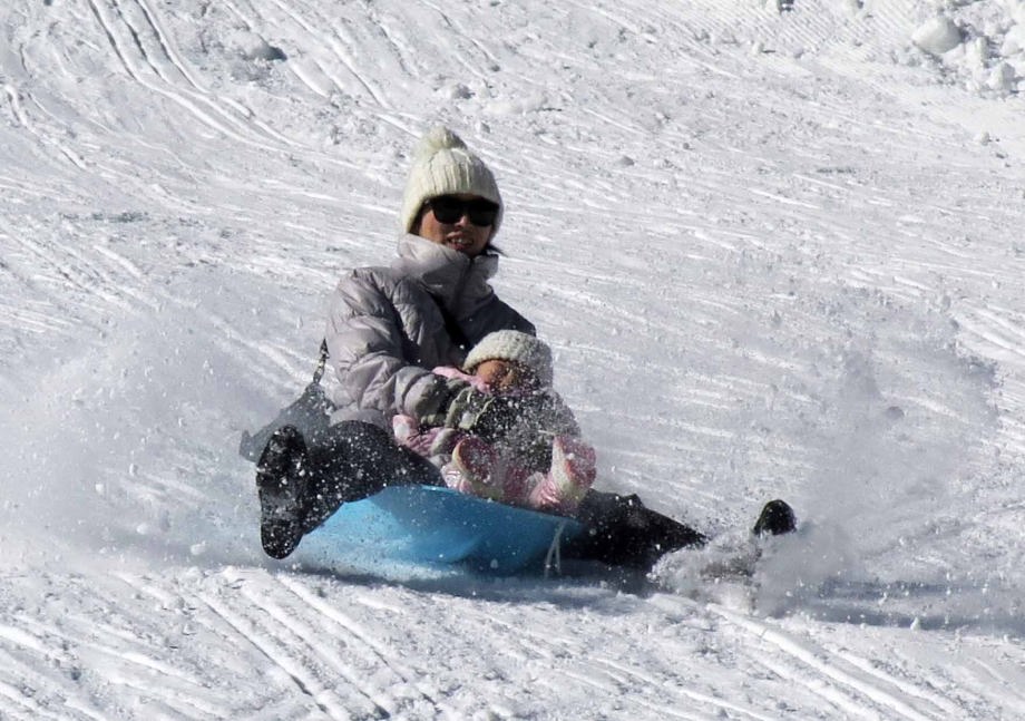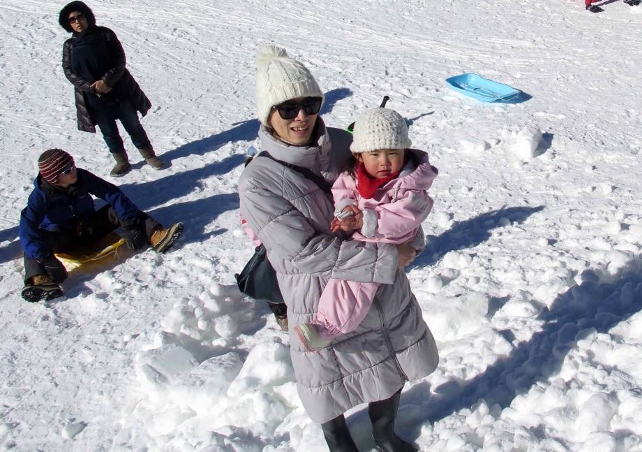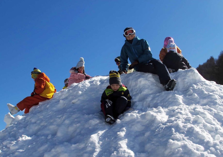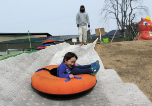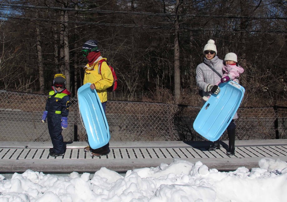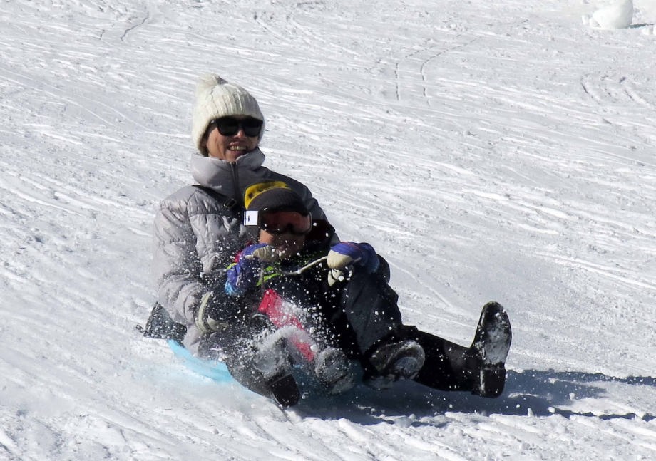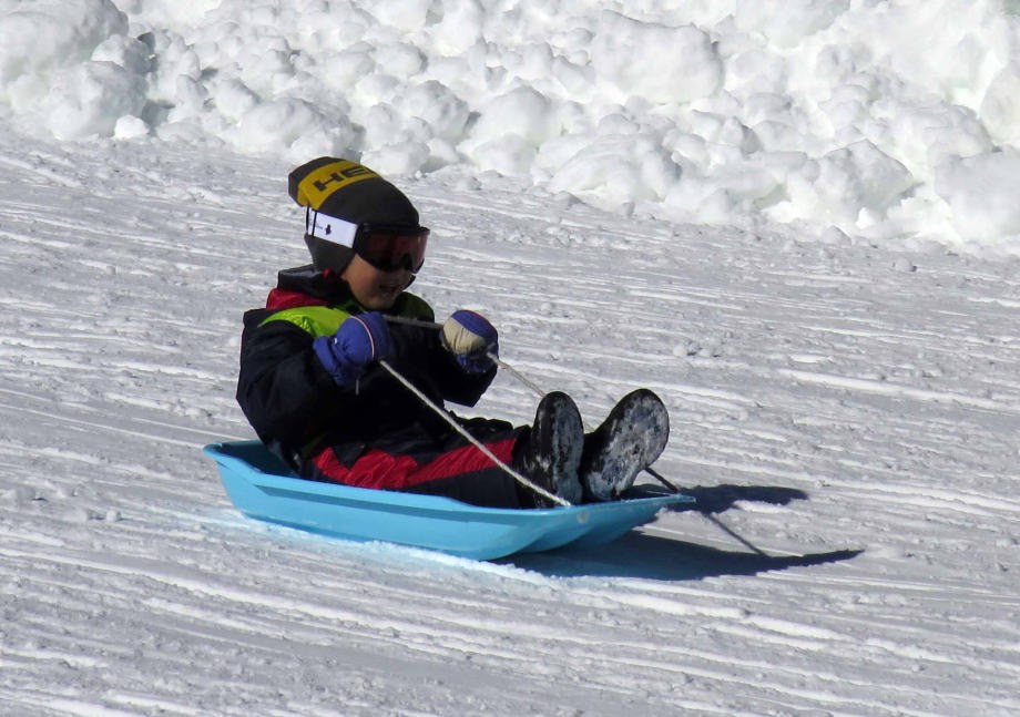 | 「ソリ」に乗ったんだ。「スノーエスカレーター」で上るから楽ちんだね。 |