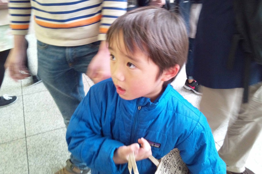 | オモチャの袋を抱えて爺ちゃん婆ちゃんと川崎駅から電車に乗ったよ。 |