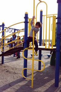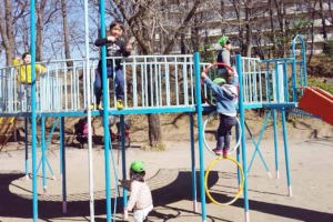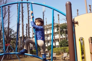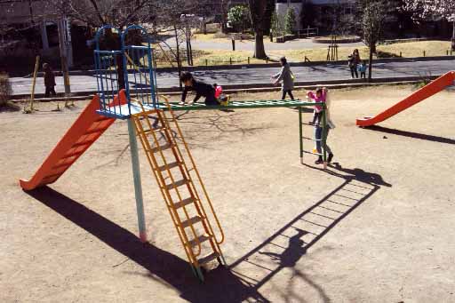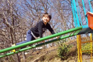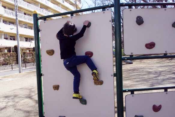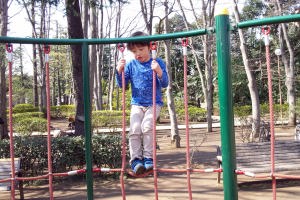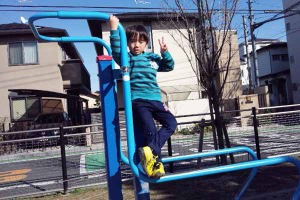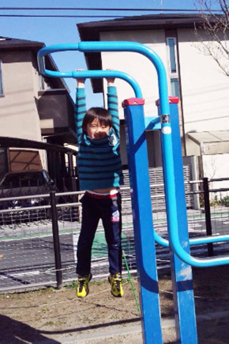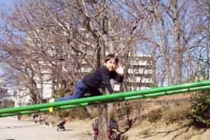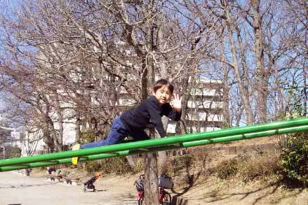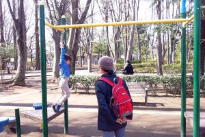 | 隣の公園でも遊んだよ。この鉄棒に乗るのが好きなんだ。 |