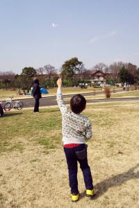 | パパも小さい頃この公園で爺ちゃん婆ちゃんと凧揚げしたんだって。 |