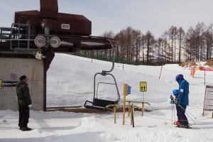 | 爺ちゃんと短いリフトに乗ったよ。もうリフトに乗るのは平気だよ。 |