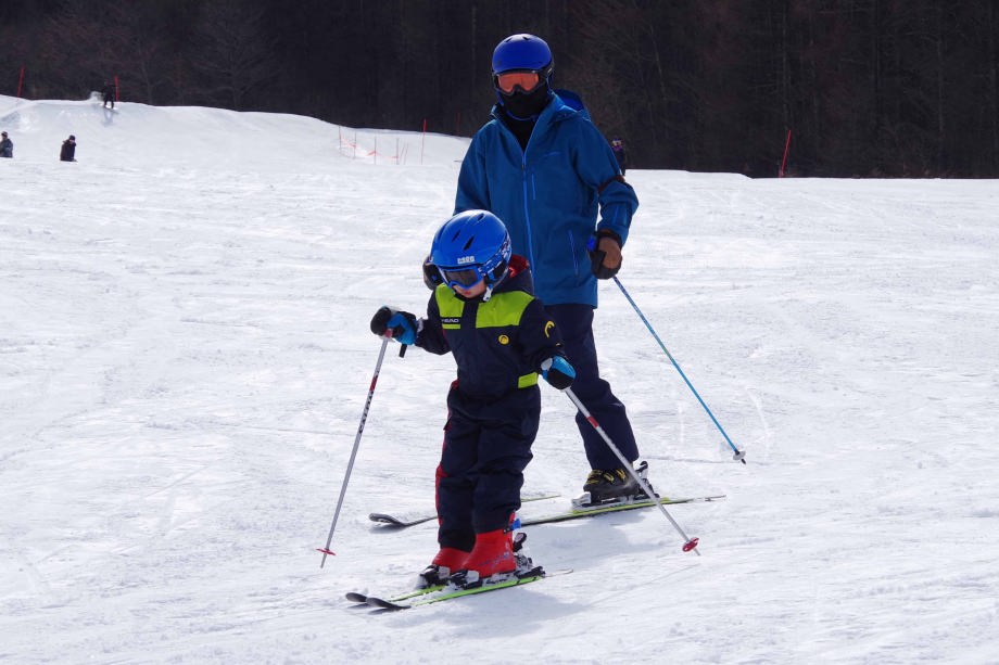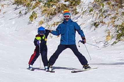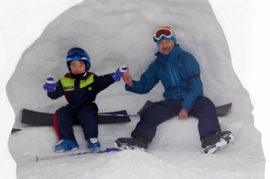 | 爺ちゃんの滑りだよ。僕が上手になるのが楽しみなんだって。 |