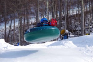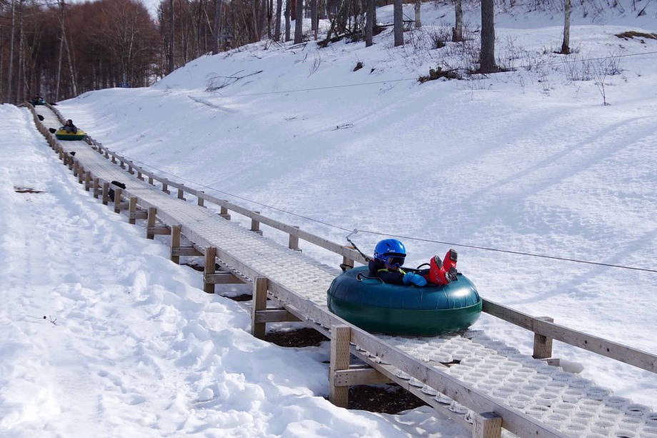 | スノーチュービングにも乗ったよ。ワイヤーが上まで引っ張ってくれるんだ。 |