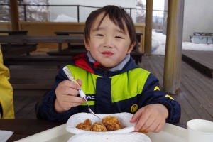 | 2/21 爺ちゃん婆ちゃんと僕の三人でスキーに行くんだけど、ママと一緒じゃないと嫌なんだ。 |