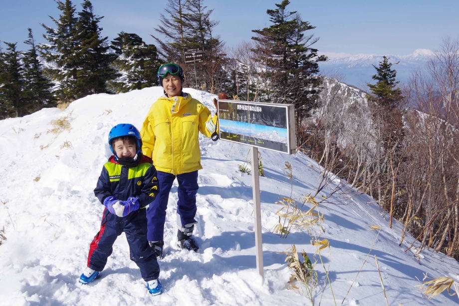 | 三人で撮ってから爺ちゃんと一緒に滑って下りたんだ。 |