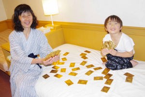 | 夜は爺ちゃん婆ちゃんと神経衰弱したよ。僕が圧勝したんだ。 |