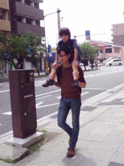 僕はパパに抱っこされているんだ。