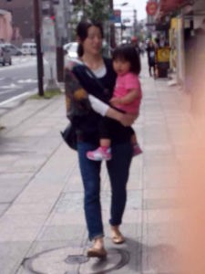 ハルちゃんはママに抱っこされてるの。