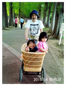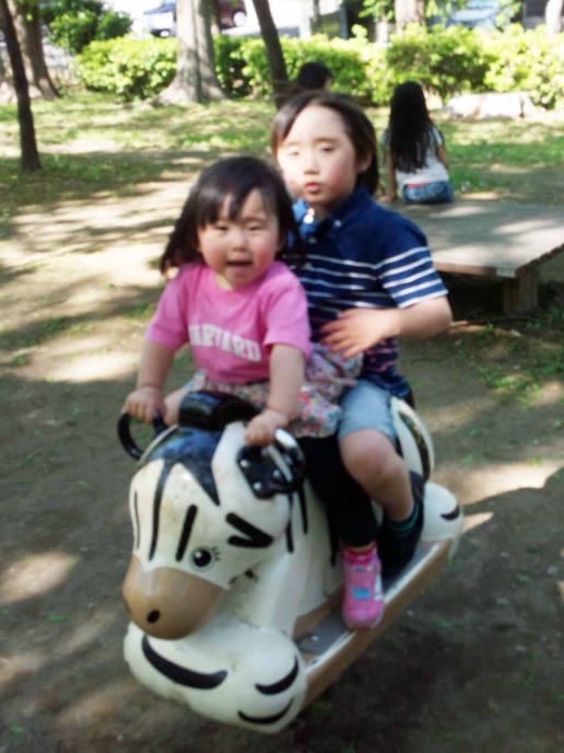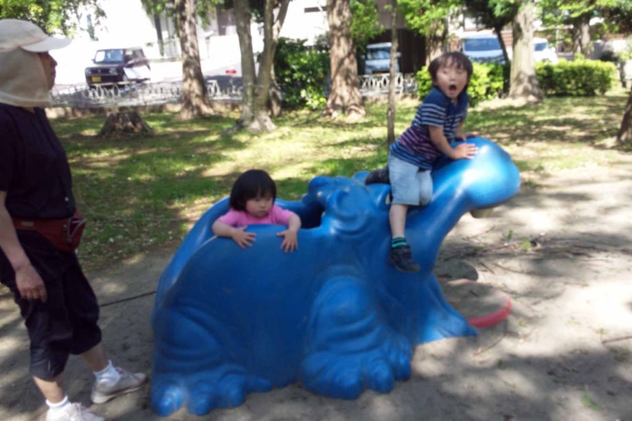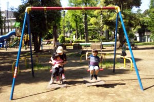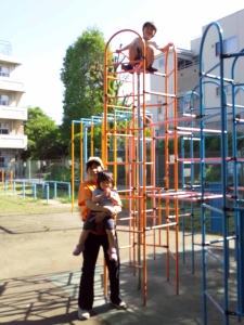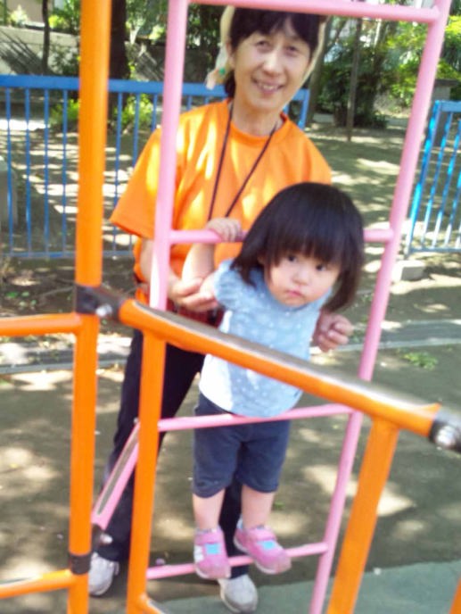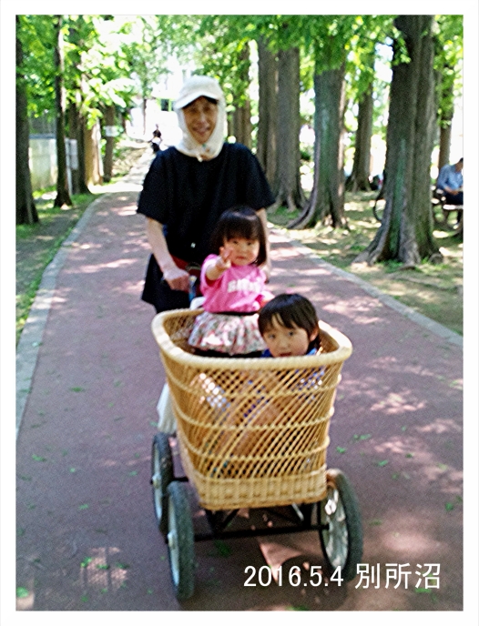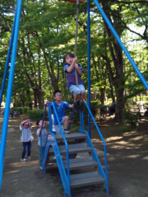 16.5.4 ママは帰ったから春ちゃんと一緒にお泊りしたよ。乳母車で別所沼公園に行って遊んだよ。僕はブランコが一番好きなんだ。一人でターザンロープに乗れるようになったよ。