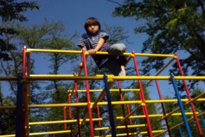 ジャングルジムに登ったよ。僕は高い所が好きなんだ。