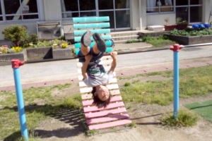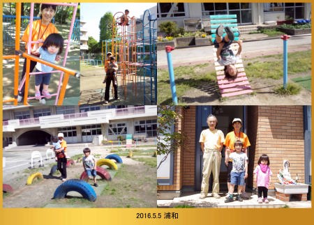 16.5.5 近所の小学校で遊んだよ。逆上がりができるようになったよ。みんなで写真を撮ってから僕んちに帰ったんだ。