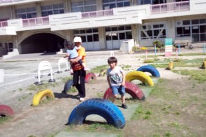 タイヤの上をジャンプして走ったよ。