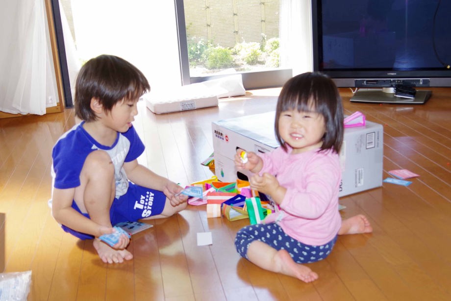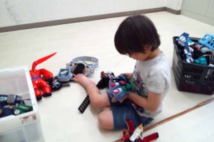 児童館に行って合体オモチャで遊んだよ。