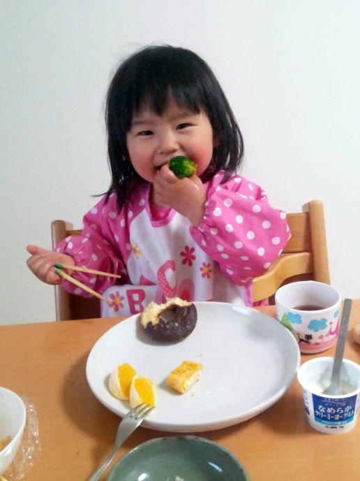 目が覚めてご飯を食べたの。