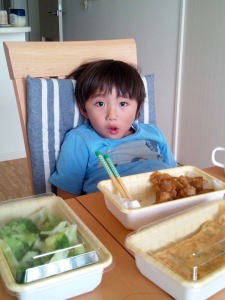お昼に婆ちゃんが作ってくれた鳥のから揚げと卵焼きとブロッコリーを食べたよ。