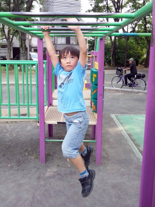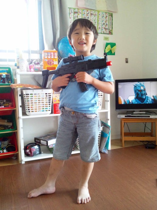 16.6.6 授業参観の振替休日だったから爺ちゃんが来たんだ。春ちゃんは保育園に行ったよ。僕は爺ちゃんとお部屋で遊んだんだ。お昼ご飯に婆ちゃんの作った鳥のから揚げと卵焼きとブロッコリーを食べたよ。公園に行って自転車に乗ったんだ。爺ちゃんに貰った鉄砲を持って写真を撮ったよ。