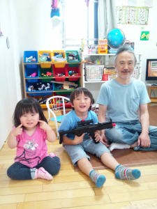 今日は兄ちゃんの授業参観振替休校日だから爺ちゃんが来たの。