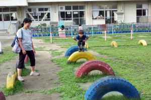 岸町小に行って渡り棒をしたよ。