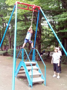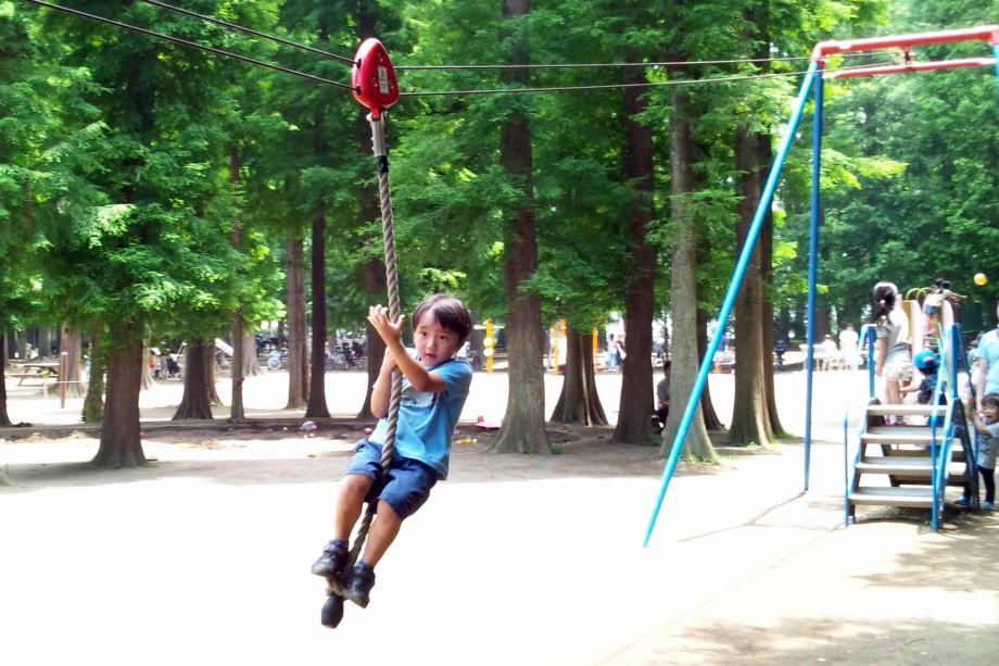 別所沼公園でターザンロープに乗ったよ。