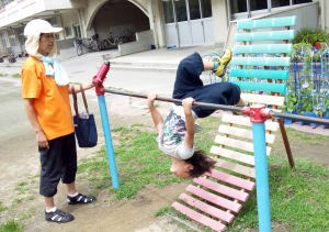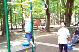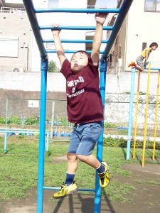 懸垂棒でブランコしたよ。
