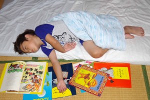 絵本を読んで貰ってから寝んねしたんだ。